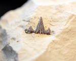 -2 (dents antérieures) ou 3 ( dents latérales) paires de cuspides latérales, striées jusqu'à la pointe.