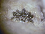 - La base des épines céphaliques est très légèrement "en forme de flèche" en vue dorsale.